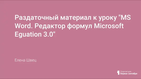 Предлагаемый материал вооружит учащихся инструментарием по набору математических текстов. Приобретенные в процессе изучения данной темы умения набирать сложные формулы помогут учащимся в дальнейшем с легкостью выполнять печатные работы в естественно-математической тематике. К раздаточному материалу прилагается краткий конспект урока. Урок можно начать с постановки проблемы, указывающей на необходимость в настоящие дни владеть навыками набора формул.