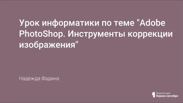 Урок закрепления навыков устранения дефектов изображения, используя инструменты клонирование штампа, текстурный штамп, вставка; освоения навыков использования инструментов коррекции изображения: лечащая и корректирующие кисти.