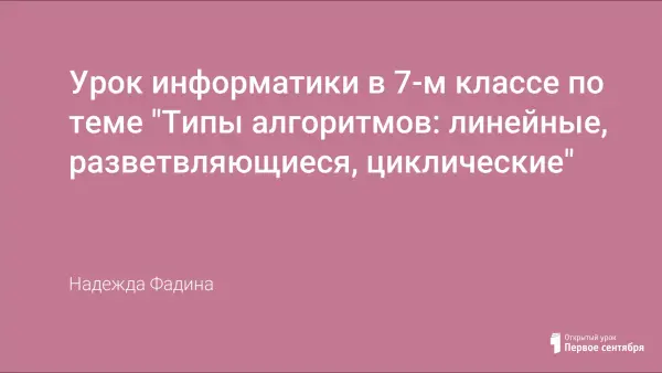 В статье описывается урок, посвященный знакомству с типами алгоритмических конструкций. Особое внимание обращается на решение задач с помощью блок-схем различных типов алгоритмов.