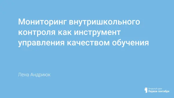 "Мониторинг внутришкольного контроля как инструмент управления качеством обучения". В работе отражена актуальность проблемы ВШК, цель исследования, объект исследования, предмет исследования, гипотеза исследования, задачи исследования, теоретическое обоснование проблемы, мониторинговые процедуры, этапы внутришкольного контроля, формы ВШК, виды ВШК.