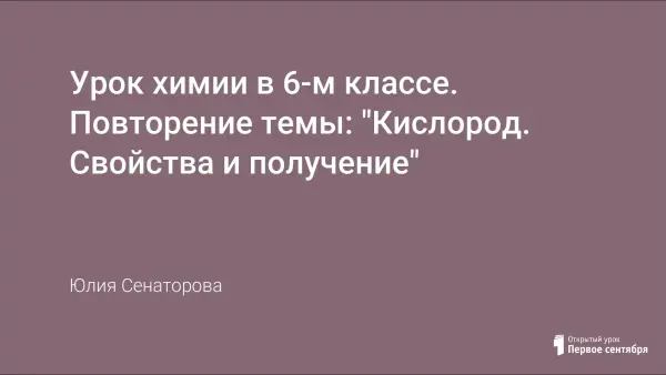 Урок химии в 6-м классе обобщает и систематизирует знания учащихся о физических и химических свойствах кислорода, нахождении в природе, способах получения в лаборатории, закрепляет практические умения учащихся вычислять относительную молекулярную массу простых и сложных веществ, определять массовую долю элемента в веществе, определять валентность элементов, составлять формулы по валентности, записывать уравнения реакций взаимодействия кислорода с простыми веществами, уравнивать их.
