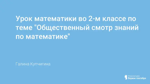 Урок математики проводится в форме смотра общественных знаний, на котором видно, что знания у детей действительно прочные, так как со всем классом работа ведется по осознанному доведению до автоматизма таблиц сложения и вычитания в пределах 20, с переходом через десяток, составлению и решению простых задач, усвоению геометрического материала.