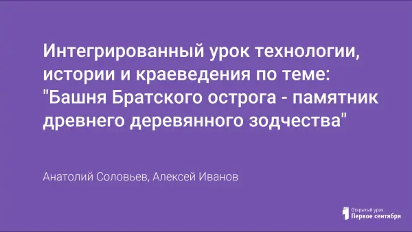 Интегрированный урок технологии, истории и краеведения в 9-м классе рассказывает о постройках Башни Братского острога.
