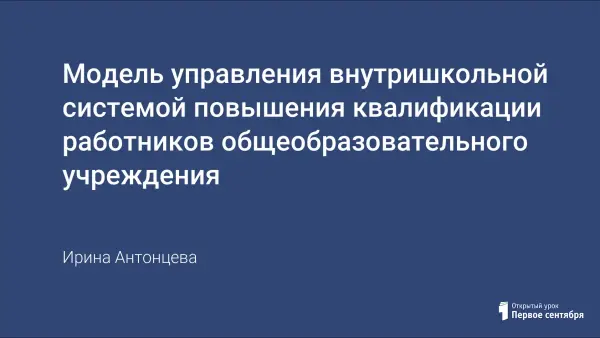 В статье представлена модель управления внутришкольной системой повышения квалификации с распределением функциональных обязанностей ответственных лиц и подразделений, участвующих во внутришкольной системе повышения квалификации педагогов школы, апробированная в МОУ «СОШ № 9 имени М.И. Баркова» г. Братска Иркутской области.