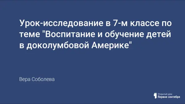 Урок-исследование в 7-м классе, на котором учащиеся занимаются исследованием особенности воспитания детей у майя, ацтеков, инков, каким образом вся воспитательная система была направлена на формирование чувства собственного достоинства, отважного, стойкого, фанатически преданного, готового на любые жертвы воина.
