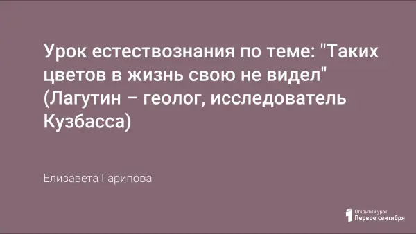 Урок естествознания по теме: "Таких цветов в жизнь свою не видел" (Лагутин – геолог, исследователь Кузбасса)