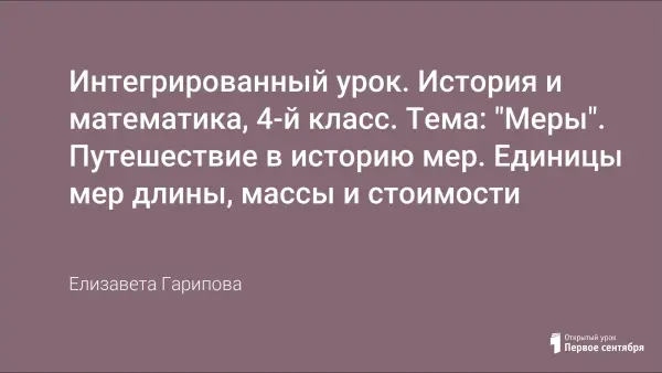 Интегрированный урок. История и математика, 4-й класс. Тема: "Меры". Путешествие в историю мер. Единицы мер длины, массы и стоимости