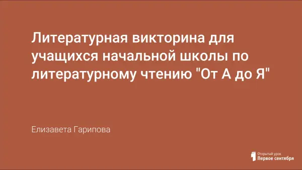 Литературная викторина для учащихся начальной школы по литературному чтению "От А до Я"