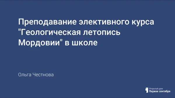 В статье обобщен опыт работы учителя географии по преподаванию элективного курса "Геологическая летопись Мордовии", рассматривается содержание всех тем. Формы занятий разнообразны: лекции, экскурсии, практические работы, полевая геологическая практика, экскурсии на местные предприятия. Результатом работы явилось написание и защита исследовательского проекта. В кабинете географии оформлена минералогическая коллекция. В приложении к статье приводится учебно-тематический план элективного курса.