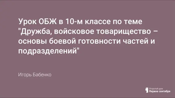 Урок ОБЖ в 10-м классе составлен так, чтобы учащиеся, овладевая новыми знаниями, имели возможность проверить развитие своих качеств личности: умение вопреки личным убеждениям и привычкам на первое место поставить общие интересы. Проводится выявление реальных взаимоотношений учащихся с окружающими при помощи тестирования. Урок направлен на воспитание чувства коллективизма, взаимопомощи.