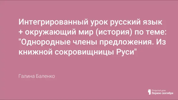 Интегрированный урок русского языка и окружающего мира для 4-го класса позволяет обобщить знания детей об однородных членах предложения, продолжать формировать умение работать с текстом; расширить и закрепить представление детей о возникновении славянской азбуки, появлении письменности на Руси, первой печатной книги, книгопечатания; привить интерес к истории русского народа, а также воспитывать любовь к родному языку, чувство патриотизма и гордости за свой народ и свою страну.