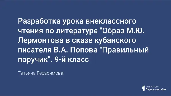 Сказ кубанского писателя В.А. Попова "Правильный поручик" отражает период первой ссылки М.Ю. Лермонтова на Кавказ. Своеобразие сказа в том, что образ Лермонтова-офицера дан через восприятие рядовых солдат и казаков. Герой-рассказчик заостряет внимание на тех чертах характера поэта, которые высоко ценились и ценятся в народной среде, подчеркивает единство взглядов на военные действия на Кавказе поручика Лермонтова и рядовых солдат.