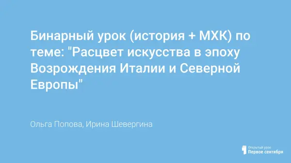 Предлагамая разработка бинарного урока «Расцвет искусства в эпоху Возрождения Италии и Северной Европы» содержит лекцию и тест, позволяющие организовать закрепление темы. Урок проводится с применением презентации.