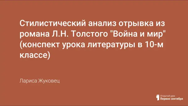 Урок по литературе для 10-го класса. Представлен стилистический анализ отрывка из романа Толстого. Основной принцип данного урока - "к авторской философии через авторскую филологию". Анализ отрывка строится так: выделяя микротексты, анализируя образные средства, проводя стилистический эксперимент, отмечая стилистические приемы, передающие эмоциональность речи, учащиеся стремятся постичь развитие авторской мысли, понять идеи отрывка на уровне авторского замысла. Такая работа обогащает речь, воспитывает вкус и интерес к слову.