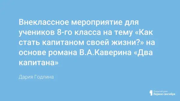Сделать из класса сплочённый, дружный коллектив – непростая задача, особенно когда дети плохо знают друг друга, имеют взаимные претензии и нежелание общаться. Как им помочь? Как поселить веру в их души, как направить фокус на положительные качества друг друга? Ответ я нахожу в совместном времяпрепровождении: классные часы, прогулки, разговоры, игры. Сегодня остановлюсь на методе классных часов. Это хороший инструмент для того, чтобы выявить проблемные зоны класса, обсудить взаимные претензии и найти ответы на свои вопросы… Как учитель литературы, зачастую я нахожу подсказки в художественных произведениях, будь то маленькие рассказы, стихи или романы. Читая литературное произведения, ребята (осознанно или нет) ассоциируют себя с героями, замечают схожие черты или, наоборот, отличия, извлекают уроки. Это, кстати, один из приёмов гуманной педагогики – разбирать ситуацию не на конкретном конфликте, а через образы, схожие мотивы, через поучительные истории… Сегодня я хочу поделиться сценарием классного часа для учеников старшего звена. Этот классный час составлен по роману В.А.Каверина «Два капитана»; данное произведение встречается в списке для летнего чтения для учеников, окончивших 7 класс.
