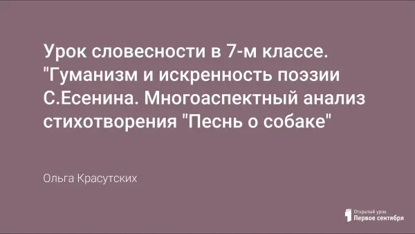 Урок словесности для 7-го класса. Целью данного урока является обзорное знакомство с поэзией С.Есенина, приобщение учащихся к миру поэтических образов его лирики, работа над созданием комплексного анализа стихотворения " Песнь о собаке".
