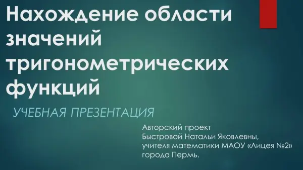 К уроку по теме "Нахождение области значений тригонометрических функций" подготовлена презентация.