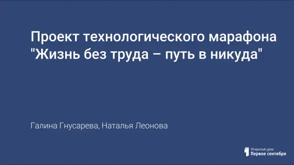 Проект технологического марафона "Жизнь без труда – путь в никуда"