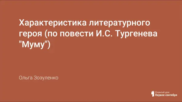 Данный урок является заключительным при изучении повести И.С. Тургенева "Муму". Урок способствует развитию мышления обучающихся, пробуждает их творческую активность, помогает лучше осмыслить литературное произведение.