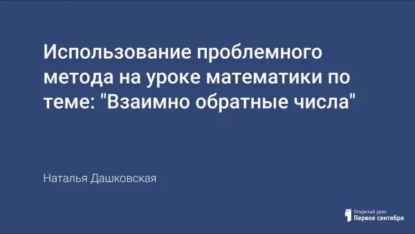 Очень хорошо получается продемонстрировать использование проблемного метода обучения на уроке математики по теме "Взаимно обратные числа". При решении некоторых задач уравнением неизвестную величину требуется найти делением дробей, но тема "Деление дробей" изучается после темы "Взаимно обратные числа", поэтому возникает необходимость показать, что существует другой способ решения задачи, используя понятие взаимно обратного числа. При попытке решить задачу обучающиеся сталкиваются с недостатком информации, которую им нужно пополнить, самостоятельно изучая новый материал по предложенным карточкам - инструкторам, где обучающиеся, работая в группах, обсуждают способы решения предложенных им заданий, развивают логическое мышление; через наблюдение частных случаев дети учатся находить закономерности и, наоборот, от предложенных закономерностей возможен переход к исследованию частных случаев. На уроке, проводимом таким образом, нет незаинтересованных детей, все работают очень хорошо весь урок; как завершение всей работы на уроке – хорошо написанные тесты.