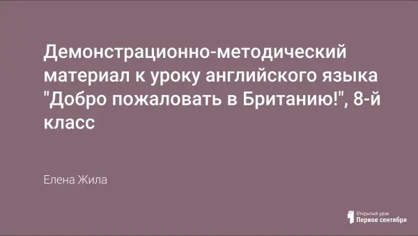 В 2006–2007 учебном году на фестиваль мною был представлен конспект урока-рекламы на тему "Добро пожаловать в Британию!" Предлагаю вам доработанную версию демонстрационного материала в виде презентации, а также дополнительный материал для проверки знаний, полученных на уроке – это тест.