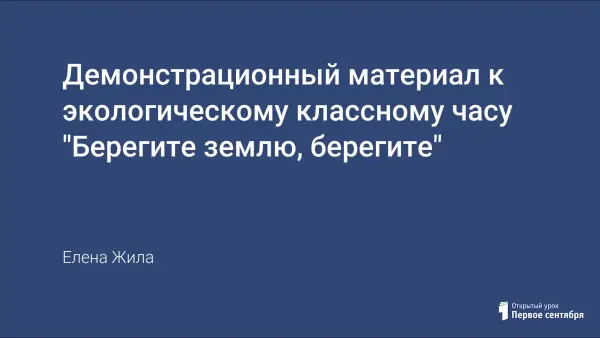 Демонстрационный материал представлен в виде презентации Microsoft Power Point. Будет полезен учителям-классным руководителям при подготовке экологических классных часов (примерная тема "Берегите землю, берегите"). Содержит пословицы, загадки, поговорки и стихи о природе, а также большое количество фотографий.