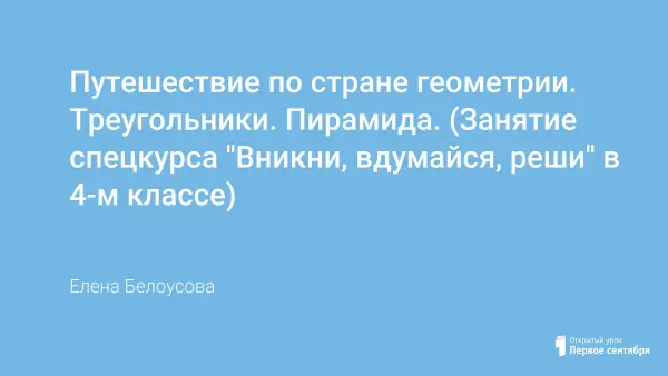 Урок-путешествие по стране Геометрии составлен по учебнику Л.Г. Петерсон. Данный тип урока положительно влияет на развитие исследовательской учебной деятельности, познавательной активности и интересов учащихся, создает ситуацию успеха для каждого ребенка, помогает каждому ученику проявить себя.