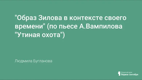 Известному сибирскому драматургу исполняется 75 лет. В пьесе «Утиная охота» А.Вампилов рассматривает основные мотивы духовного кризиса и поиска смысла жизни человека 70-х годов XX века. Драматург дает психологический портрет героя своего времени, обращается к внутреннему миру Зилова и ищет вместе с ним ответы на вечные вопросы: зачем человеку совесть, правда?