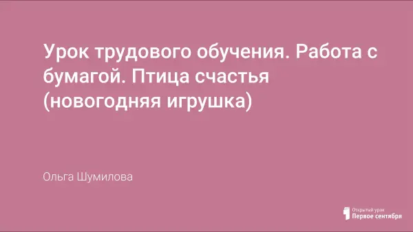 Данный урок лишь один из блока уроков «Работа с бумагой», на которых дети учатся конструировать, а значит планировать и проектировать, преобразовывая свой замысел в действующую модель. На уроке по теме учащиеся изготавливали новогодние игрушки, которыми украсили школьную ёлку. Одна группа по технологической карте изготавливала туловище птицы. Она работала в технике оригами. Другая группа по чертежу конструировала хвост.