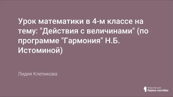 Действия с величинами – это одна из трудных тем программы начальной школы. Развитие индивидуальности каждого ученика происходит в ситуации общения и взаимодействия друг с другом в форме учебной игры, вовлечением в работу учащихся с различными уровнями обученности. Это позволяет ученику быть субъектом учебной деятельности, самостоятельно добывать знания, применять свой потенциал общительности, показывать уровень коммуникативной культуры.