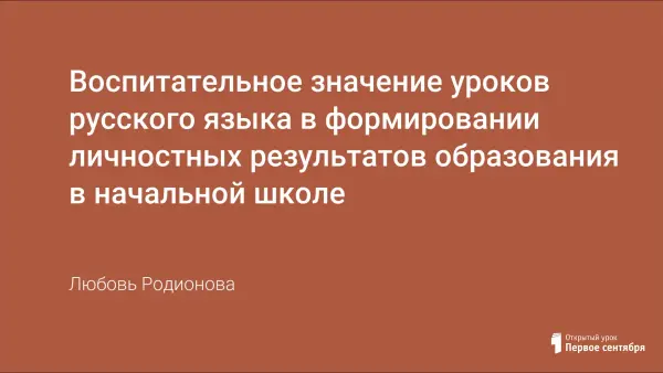 Воспитательное значение уроков русского языка в формировании личностных результатов образования в начальной школе