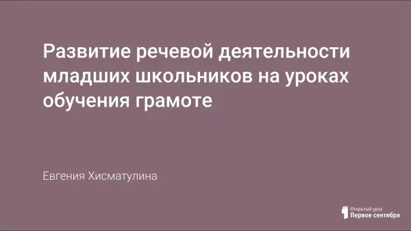 Развитие речевой деятельности младших школьников на уроках обучения грамоте