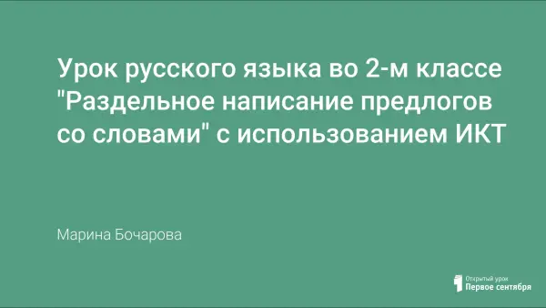 Представленный урок русского языка во 2-м классе по образовательной программе "Школа-2000",... "Школа-2100" формирует представление о предлоге как о слове, развивает умение писать предлоги раздельно с другими словами.