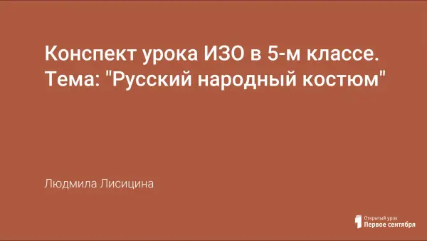 Конспект урока ИЗО в 5-м классе. Тема: "Русский народный костюм"