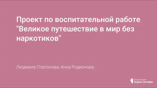 Проект по воспитательной работе "Великое путешествие в мир без наркотиков"