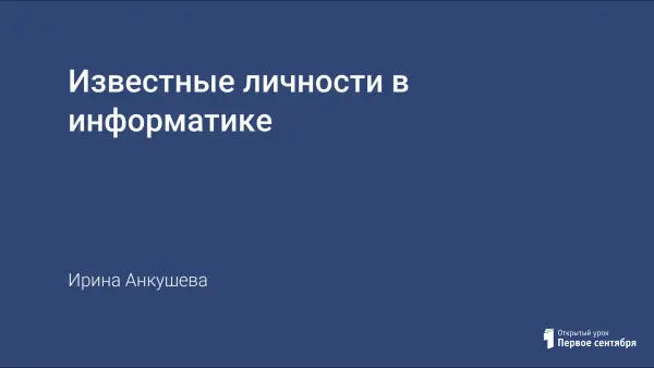 Урок знакомит с биографиями некоторых ученых, которые внесли большой вклад в развитие информатики, а также с графическим способом описания алгоритмов, системами счисления, измерением информации.