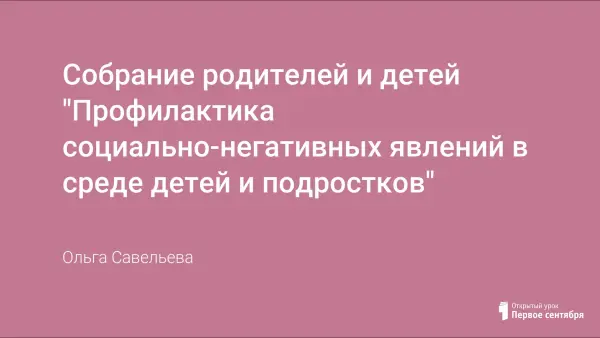 Как уберечь ребенка от пагубных привычек? Многие родители уверены в том, что их дети ничего не знают об алкоголе, сигаретах и наркотиках. А между тем факты свидетельствуют о том, что уже к 7–9 годам мальчики и девочки неплохо осведомлены в отношении одурманивающих средств и уже в 8–10 лет зафиксированы случаи употребления наркотиков. Автор на собрании объединяет усилия школы и семьи в профилактике вредных привычек у школьников.