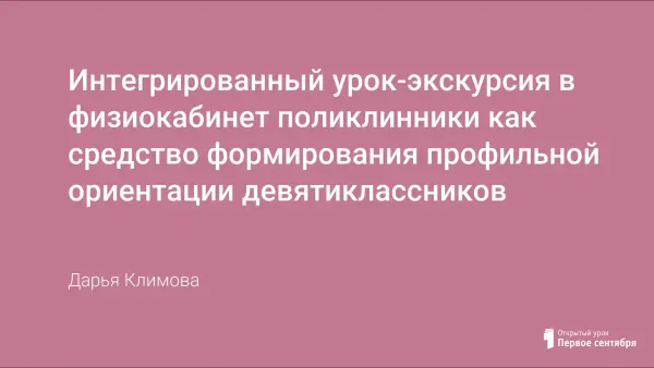 В данной статье рассматривается описание интегрированного урока-экскурсии в физиокабинет городской поликлиники с целью знакомства учащихся с принципом действия медицинских приборов и профессиями физиотерапевта и медицинской сестры физиотерапевтического отделения.
