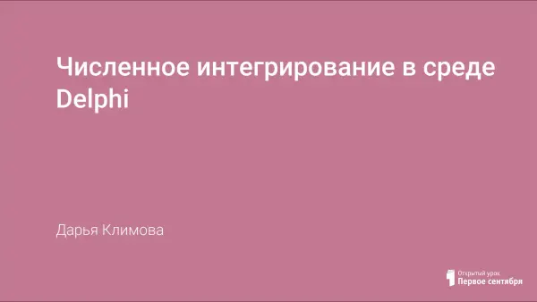 Для реализации численных методов и решения научно-технических проблем применяют как стандартные программы, так и объектно-ориентированные пакеты прикладных программ, одной из которых является среда Delphi – среда разработки программ, ориентированных на работу в операционной системе Windows. В статье рассмотрена лабораторная работа «Вычисление определенного интеграла при помощи метода трапеций» в среде Delphi для студентов, изучающих дисциплину «Прикладная информатика».