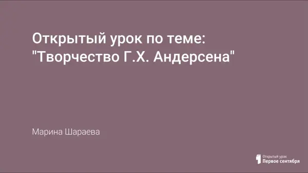 Это один из уроков по творчеству Г.Х. Андерсена. На нём в простой и доступной форме дети знакомятся не только с его творчеством, но и с интересными фактами его биографии. Анализ произведений Г.Х. Андерсена проходит в форме групповой работы.