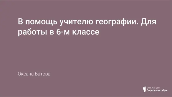 В работе представлен материал, состоящий из четырех разделов: использование и пример опорных конспектов на уроках географии в 6-м классе; один из видов опроса, включенных в ЕГЭ - "Установите соответствие"; один из примеров изучения номенклатуры в 6-м классе; использование литературы на уроке географии.