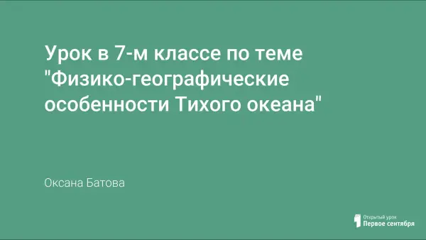 Данный урок построен с использованием приемов технологии развития критического мышления. На уроке ребята знакомятся с физико-географическими особенностями Тихого океана, хозяйственной деятельностью человека в океане. Развивают умение работать в группе, анализировать, обобщать и систематизировать материал через весь урок проходит яркое, красочное компьютерное сопровождение, которое не оставило без внимания ни одного ребенка.