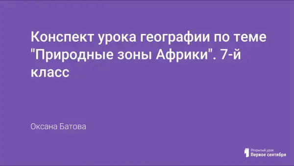 Урок географии в 7-м классе на котором показано разнообразие природных зон Африки, их зависимость от климата, рассказывается об особенностях природы экваториальных лесов, саванн и пустынь, дается характеристика климата, почв этих зон, говорится о влиянии человека на природу.