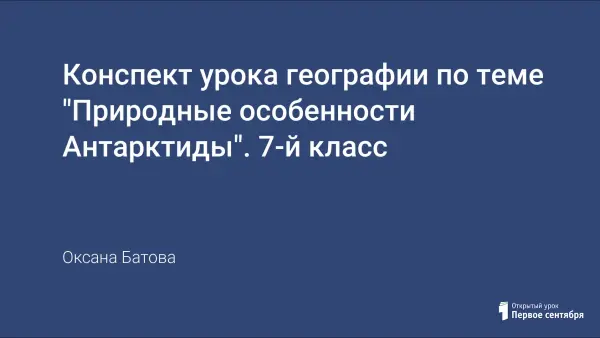 На данном уроке учитель реализует следующие задачи: осознание личностного вклада в решение поставленной проблемы. Формирует у учащихся знания о природе Антарктиды, умения объяснять и применять эти знания, действовать продуктивно по изучаемой теме. Формировать умения взаимодействовать с одноклассниками, работать в малых группах с выполнением различных социальных ролей, представлять себя.