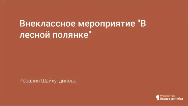 Внеклассное мероприятие в 1 и 2-м классе. Данное мероприятие обобщающее и систематизирующее знания учащихся. Тема: сказка «На лесной полянке». Форма проведения: групповая, индивидуальная. Цели: закрепление полученных знаний, развитие логического мышления, памяти, воспитание любви к окружающему миру.
