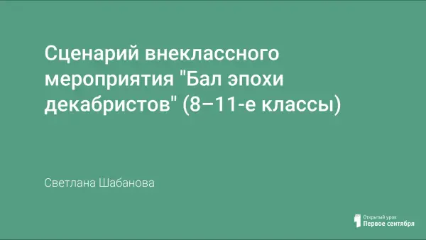 Представлен сценарий внеклассного мероприятия по истории "Бал эпохи декабристов".