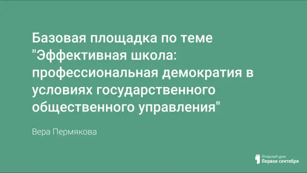 Базовая площадка по теме «Эффективная школа: профессиональная демократия в условиях государственного общественного управления» организована с целью создания оптимальных условий и форм организации управления воспитательно-образовательным процессом, совершенствование имиджа школы как единой команды на базе муниципального образовательного учреждения «Средняя общеобразовательная школа № 32» г. Полысаево Кемеровской области для замдиректора по воспитательной работе, старших вожатых, классных руководителей, социальных педагогов, родительской общественности.