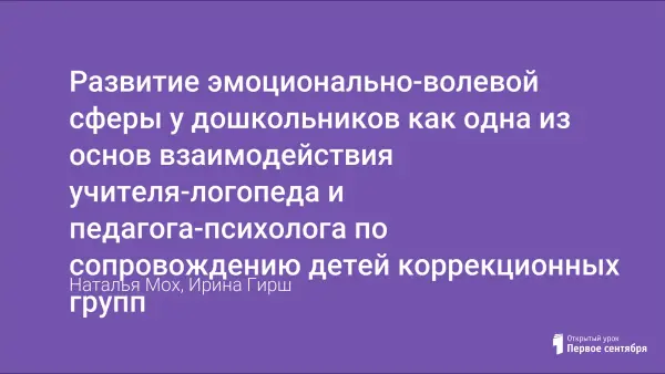 Развитие эмоционально-волевой сферы у дошкольников как одна из основ взаимодействия учителя-логопеда и педагога-психолога по сопровождению детей коррекционных групп
