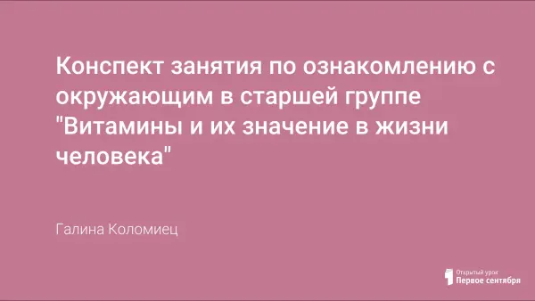 Цель урока: познакомить детей с понятием "витамины", сформировать у них представление о необходимости наличия витаминов в организме человека, о полезных продуктах, в которых содержатся витамины, воспитывать у детей культуру питания, чувство сопереживания, желание прийти на помощь.