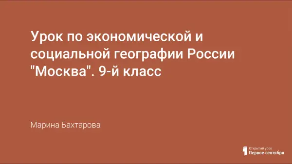 В представленной работе дается материал для подготовки и проведения урока по экономической и социальной географии России в 9-м классе по теме "Москва". Возможно проведение урока с использованием компьютерных технологий и в традиционной форме.